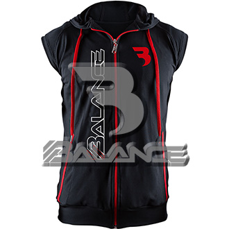 Men sleeveless hoodie jacket with full zip, cap and drawstring. The hoodie is lightweight, breathable and has embroidery on front.
