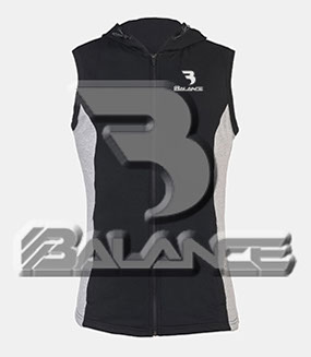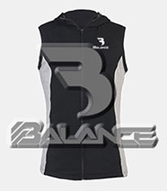 Men sleeveless hoodie jacket with full zip, cap and drawstring. The hoodie is lightweight and breathable.
