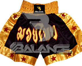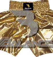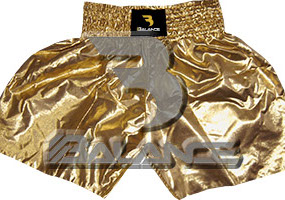 Muay Thai Golden Short. Light weight strong durable and hard wearing satin material with wide elastic waist and cord waistband with wide leg rooms allowing the freedom of movement to execute speedy high kicks and knees.
