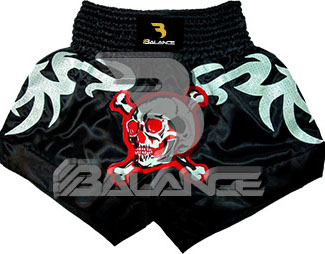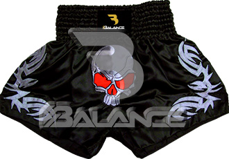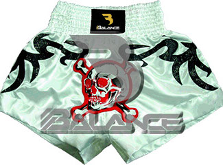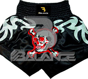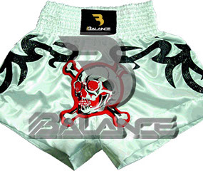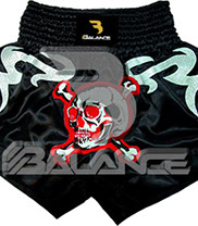 Muay Thai Skull Short. Light weight strong durable and hard wearing satin material with wide elastic waist and cord waistband with wide leg rooms allowing the freedom of movement to execute speedy high kicks and knees.