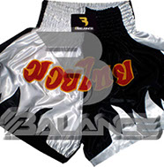 Muay Thai Sword Short with writing Style. Light weight strong durable and hard wearing satin material with wide elastic waist and cord waistband with wide leg rooms allowing the freedom of movement to execute speedy high kicks and knees.