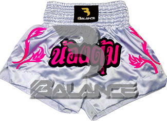 Muay Thai Ladies Short with writing Style. Light weight strong durable and hard wearing satin material with wide elastic waist and cord waistband with wide leg rooms allowing the freedom of movement to execute speedy high kicks and knees.