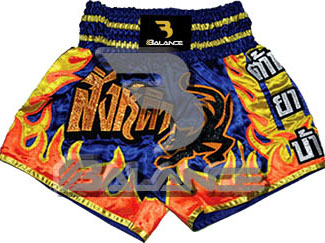 Muay Thai Flames Short. Light weight strong durable and hard wearing satin material with wide elastic waist and cord waistband with wide leg rooms allowing the freedom of movement to execute speedy high kicks and knees.