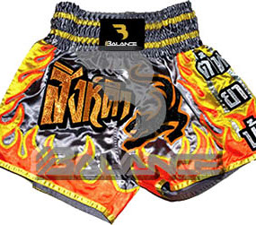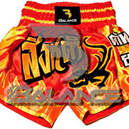 Muay Thai Fire Short with writing Style. Light weight strong durable and hard wearing satin material with wide elastic waist and cord waistband with wide leg rooms allowing the freedom of movement to execute speedy high kicks and knees.
