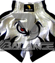 Muay Thai Angry Eyes Short with writing Style. Light weight strong durable and hard wearing satin material with wide elastic waist and cord waistband with wide leg rooms allowing the freedom of movement to execute speedy high kicks and knees.