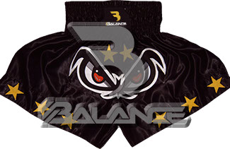 Muay Thai Angry Eyes and Stars Short. Light weight strong durable and hard wearing satin material with wide elastic waist and cord waistband with wide leg rooms allowing the freedom of movement to execute speedy high kicks and knees.