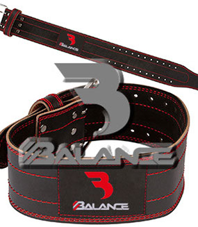 Weightlifting belt made of high quality leather with lumbar padding, with heavy duty double prong buckle for safety and support with multiple adjustment
