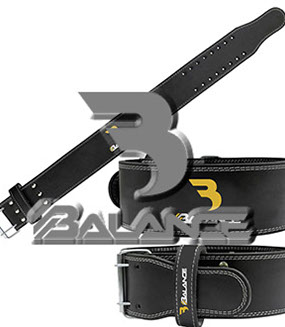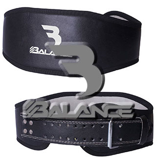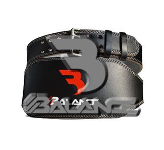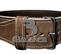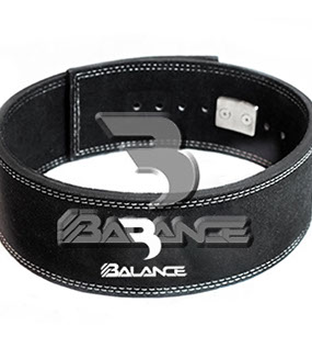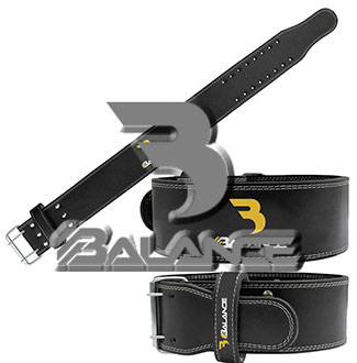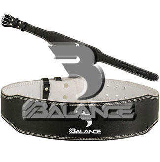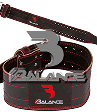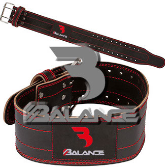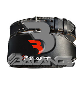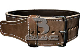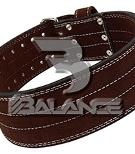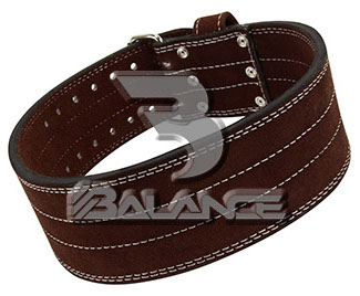 Weightlifting belt made of high quality leather with lumbar padding, with heavy duty single prong buckle for safety and support with multiple adjustment