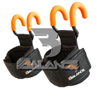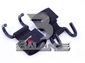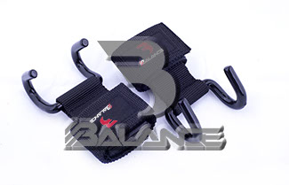 Weightlifting hook made of high quality steel with anti-slip rubber coating, fully adjustable padded strap.
