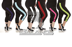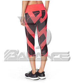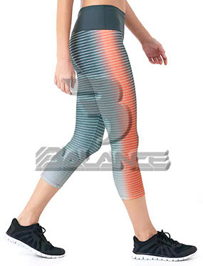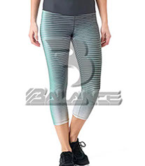 Women sports compression capri leggings made of best quality soft and strong polyester spandex. Used for fitness training, gym, yoga or running, striped design.