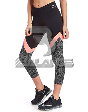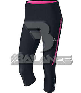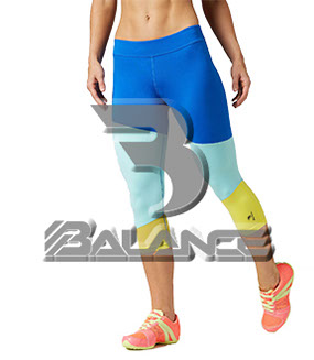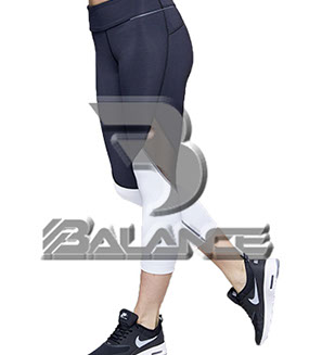 Women sports compression capri leggings made of best quality soft and strong polyester spandex. Used for fitness training, gym, yoga or running. Three colored legging design.