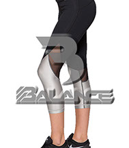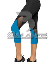 Women sports compression capri leggings made of best quality soft and strong polyester spandex. Used for fitness training, gym, yoga or running, Block colored and mesh panels behind the knees.