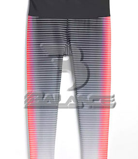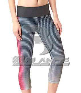 Women sports compression capri leggings made of best quality soft and strong polyester spandex. Used for fitness training, gym, yoga or running. Stripes and gradient design.