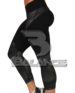 Women sports compression capri leggings made of best quality soft and strong polyester spandex. Used for fitness training, gym, yoga or running. Specific design and lined pattern for women.