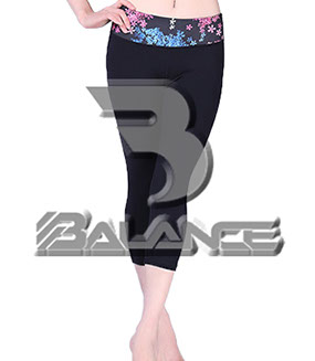 Women sports compression capri leggings made of best quality soft and strong polyester spandex. Used for fitness training, gym, yoga or running. Printed waistband with simple tights.