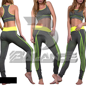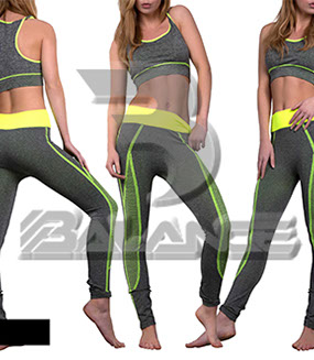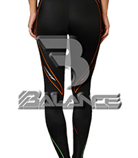 Women sports compression leggings with contrasting colors on sides, used for fitness training, gym, yoga, running. Quick dry for comfy fitting made of best quality soft and strong polyester spandex and let muscles perform at best. Wide elasticated waistband for best breathability.