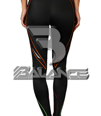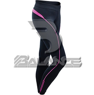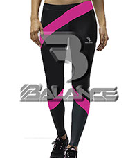 Women sports compression leggings used for fitness training, gym, dancing, yoga or running. Quick dry for comfy fitting made of best quality soft and strong polyester spandex. Contrasting colored tights design.