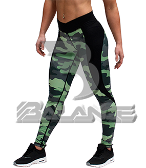 Women sports compression capri leggings made of best quality soft and strong polyester spandex. Used for fitness training, gym, yoga or running. Digital camouflage mix print design.