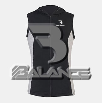 Men sleeveless hoodie jacket with full zip, cap and drawstring. The hoodie is lightweight and breathable.