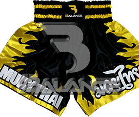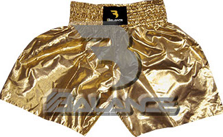 Muay Thai Golden Short. Light weight strong durable and hard wearing satin material with wide elastic waist and cord waistband with wide leg rooms allowing the freedom of movement to execute speedy high kicks and knees.