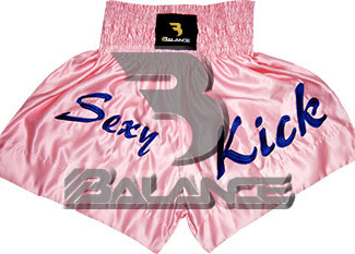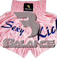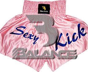 Muay Thai Ladies Short with writing Style. Light weight strong durable and hard wearing satin material with wide elastic waist and cord waistband with wide leg rooms allowing the freedom of movement to execute speedy high kicks and knees.