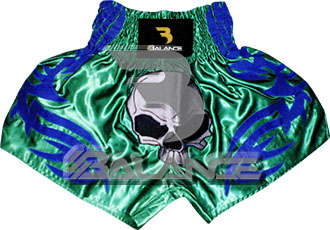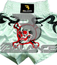 Muay Thai Skull Short. Light weight strong durable and hard wearing satin material with wide elastic waist and cord waistband with wide leg rooms allowing the freedom of movement to execute speedy high kicks and knees.