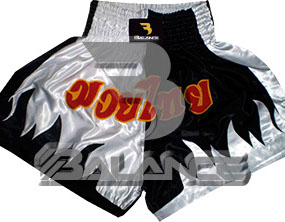 Muay Thai Sword Short with writing Style. Light weight strong durable and hard wearing satin material with wide elastic waist and cord waistband with wide leg rooms allowing the freedom of movement to execute speedy high kicks and knees.
