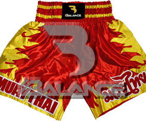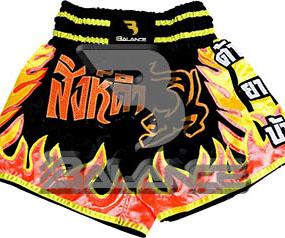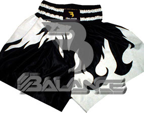 Muay Thai Flames Short. Light weight strong durable and hard wearing satin material with wide elastic waist and cord waistband with wide leg rooms allowing the freedom of movement to execute speedy high kicks and knees.