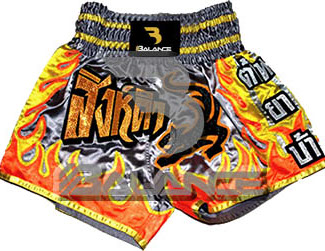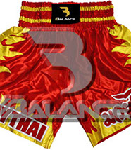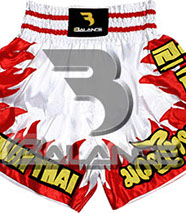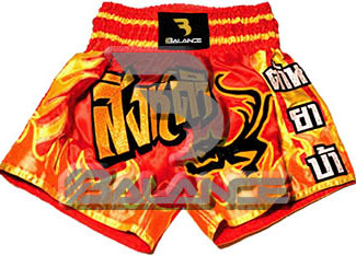 Muay Thai Fire Short with writing Style. Light weight strong durable and hard wearing satin material with wide elastic waist and cord waistband with wide leg rooms allowing the freedom of movement to execute speedy high kicks and knees.