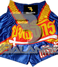 Muay Thai Short with writing Style. Light weight strong durable and hard wearing satin material with wide elastic waist and cord waistband with wide leg rooms allowing the freedom of movement to execute speedy high kicks and knees.