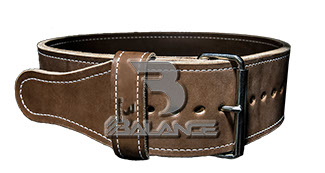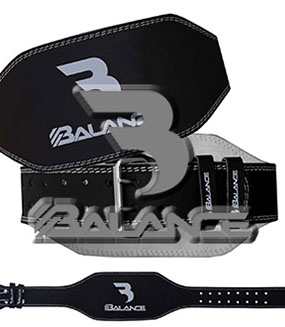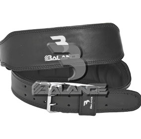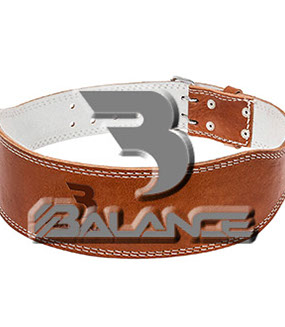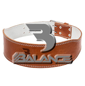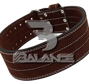 Weightlifting belt made of high quality leather with lumbar padding, with heavy duty single prong buckle for safety and support with multiple adjustment