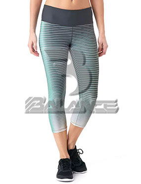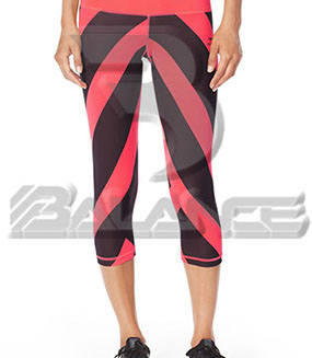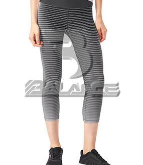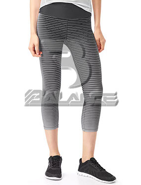 Women sports compression capri leggings made of best quality soft and strong polyester spandex. Used for fitness training, gym, yoga or running, striped design.