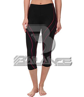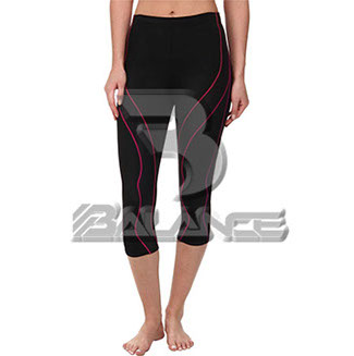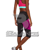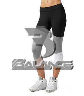 Women sports compression capri leggings made of best quality soft and strong polyester spandex. Used for fitness training, gym, yoga or running. Three colored legging design.