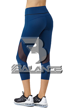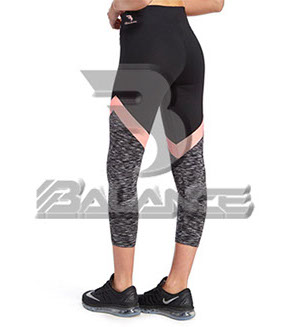 Women sports compression capri leggings made of best quality soft and strong polyester spandex. Used for fitness training, gym, yoga or running, Block colored and mesh panels behind the knees.