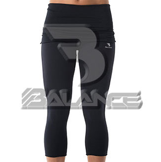 Women 2 in 1 with fold over waistband, sports compression capri leggings made of best quality soft and strong polyester spandex. Used for fitness training, gym, yoga or running, Three colored legging design.