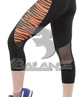 Women sports compression capri leggings made of best quality soft and strong polyester spandex. Used for fitness training, gym, yoga or running. Side pocket and Tiger pattern design.