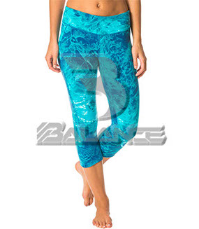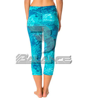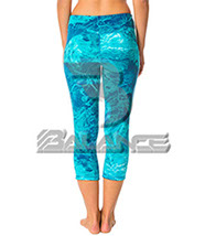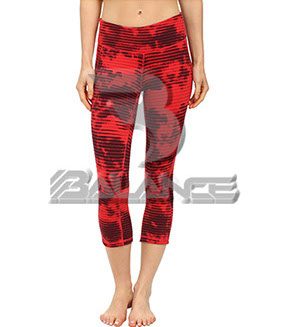 Women sports compression capri leggings made of best quality soft and strong polyester spandex. Used for fitness training, gym, yoga or running, full printed legging with extra strong meshed waistband.