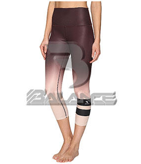 Women sports compression capri leggings made of best quality soft and strong polyester spandex. Used for fitness training, gym, yoga or running, Gradient design with wide and comfortable waistband.