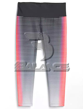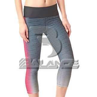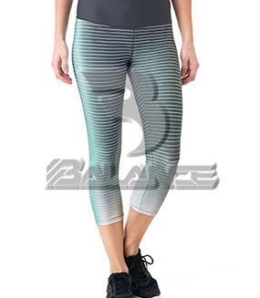 Women sports compression capri leggings made of best quality soft and strong polyester spandex. Used for fitness training, gym, yoga or running. Stripes and gradient design.
