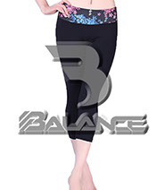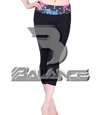 Women sports compression capri leggings made of best quality soft and strong polyester spandex. Used for fitness training, gym, yoga or running. Printed waistband with simple tights.