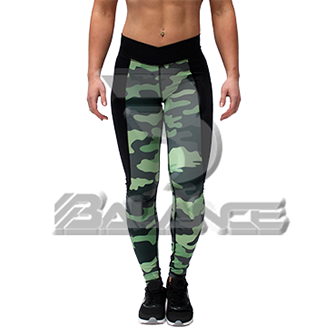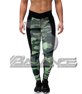 Women sports compression capri leggings made of best quality soft and strong polyester spandex. Used for fitness training, gym, yoga or running. Digital camouflage mix print design.